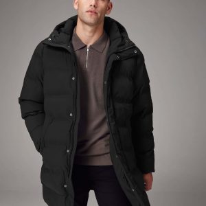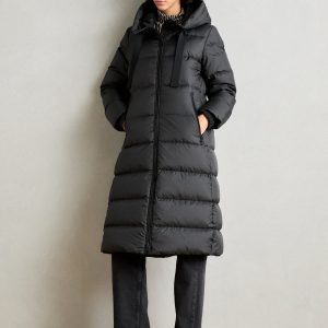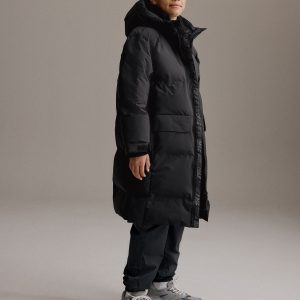 Schwarzer Langer Daunenmantel