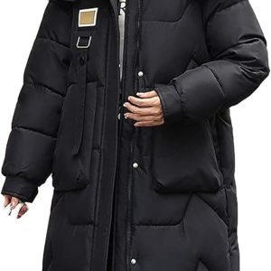 Daunenmantel Damen Schwarz Lang
