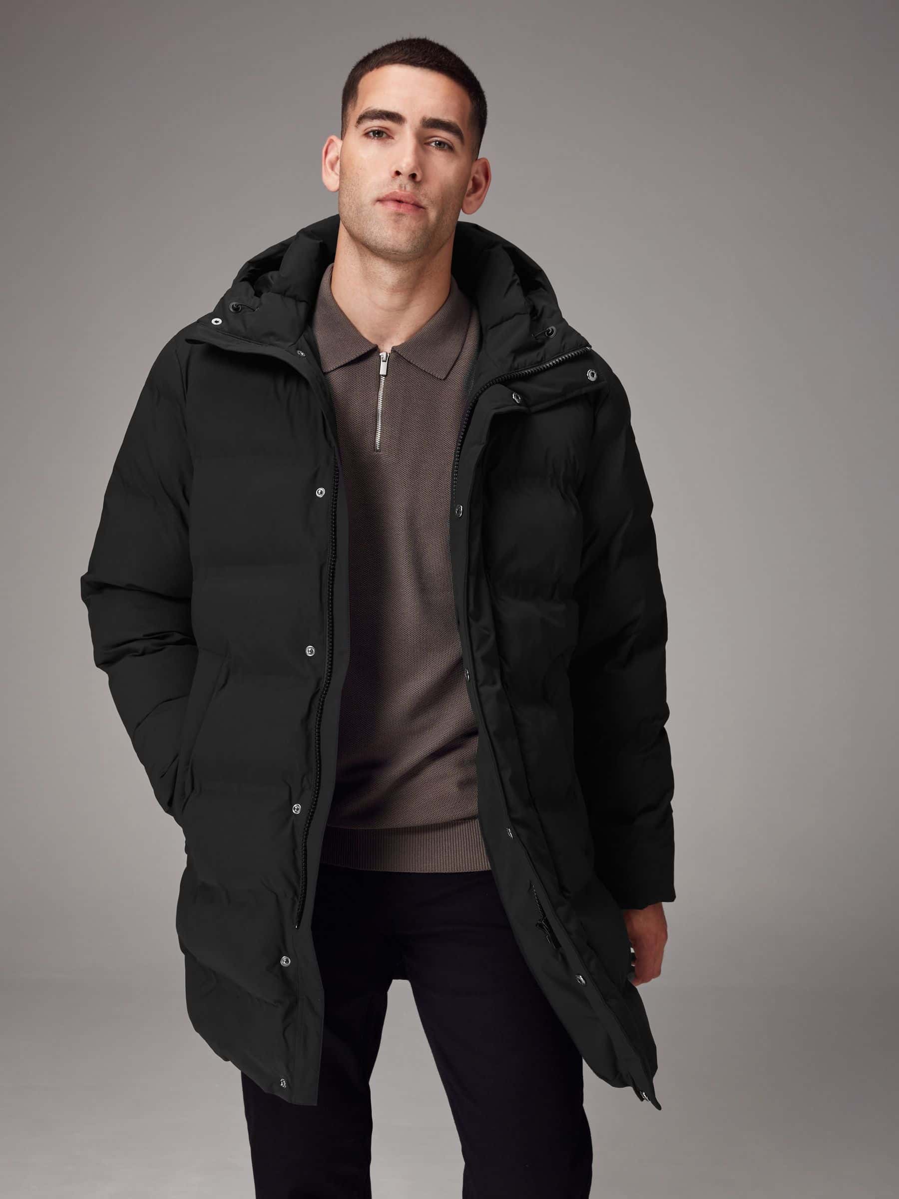 Kaufen Sie Schwarz L?nger geschnitten Spritzwasserabweisender Daunenmantel mit Kapuze bei Next Deutschland